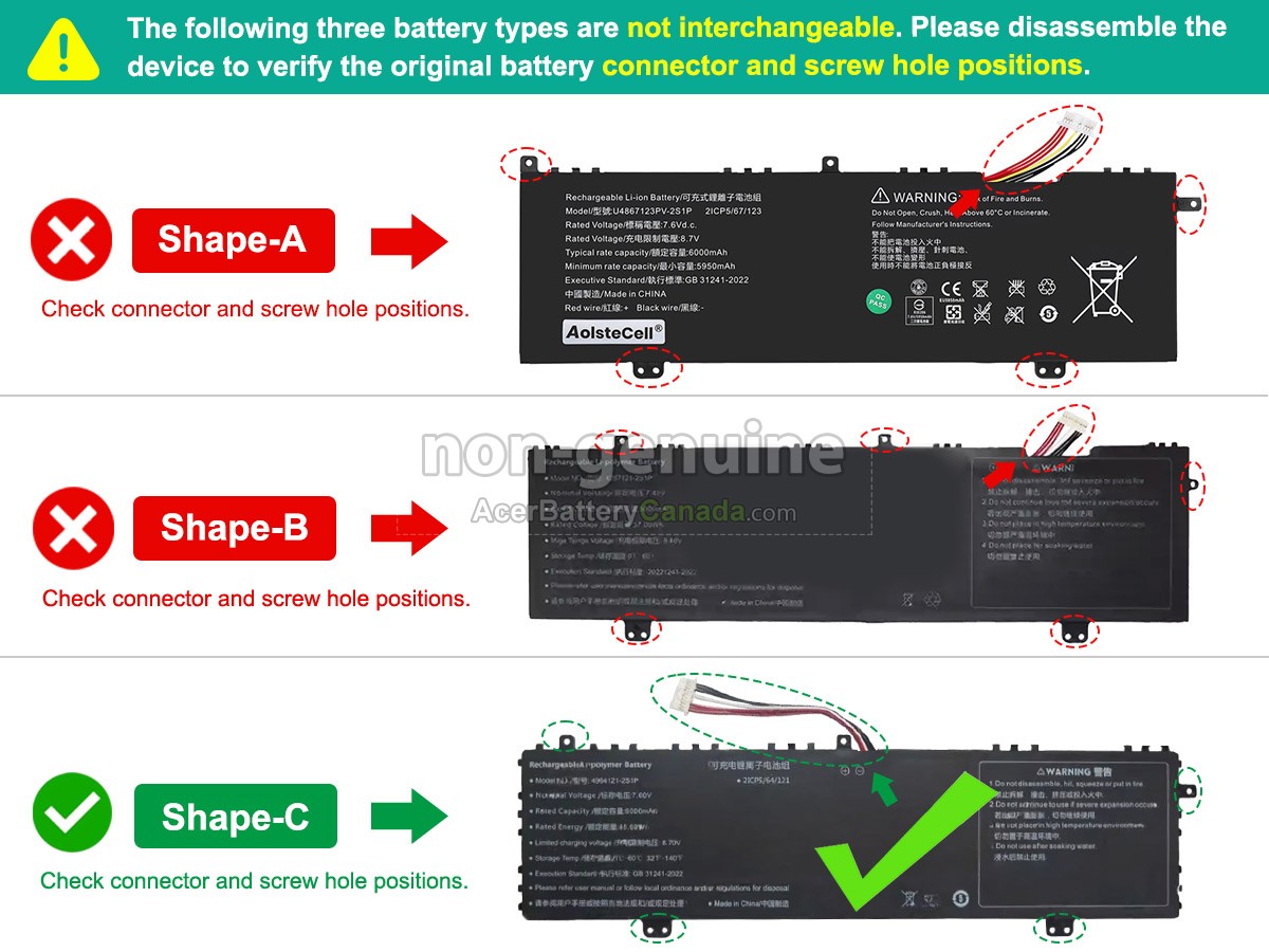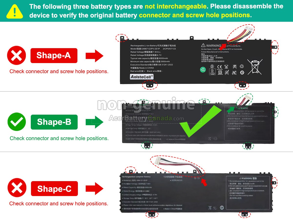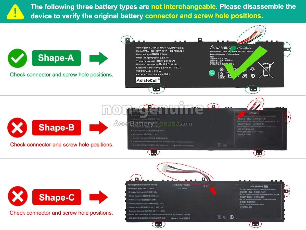 The Acer 4964121-2S1P replacement battery materials are supplied by the original manufacturer, the size of our battery is the same as the original battery, and 100% compatible with your laptop.