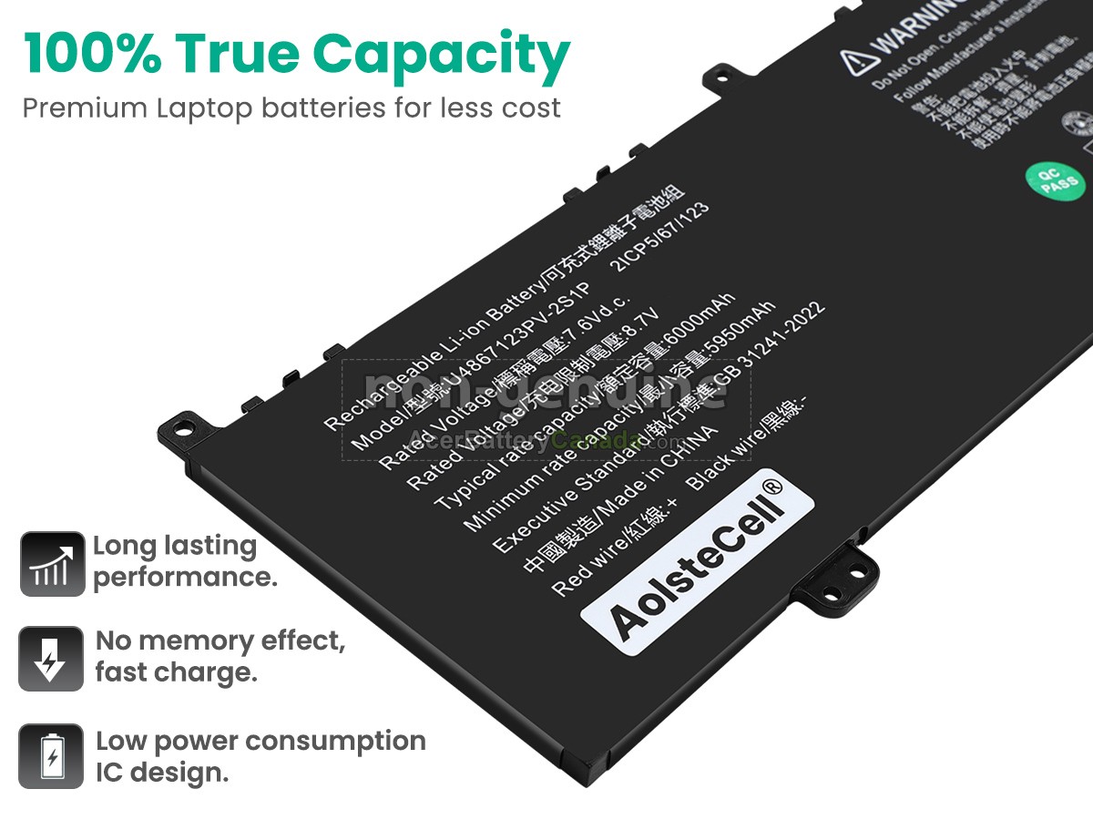 Our Acer 4964121-2S1P battery replacement has 100% real capacity, all of the batteries you receive have passed the strict quality test, reaching or even exceeding the OEM standards.